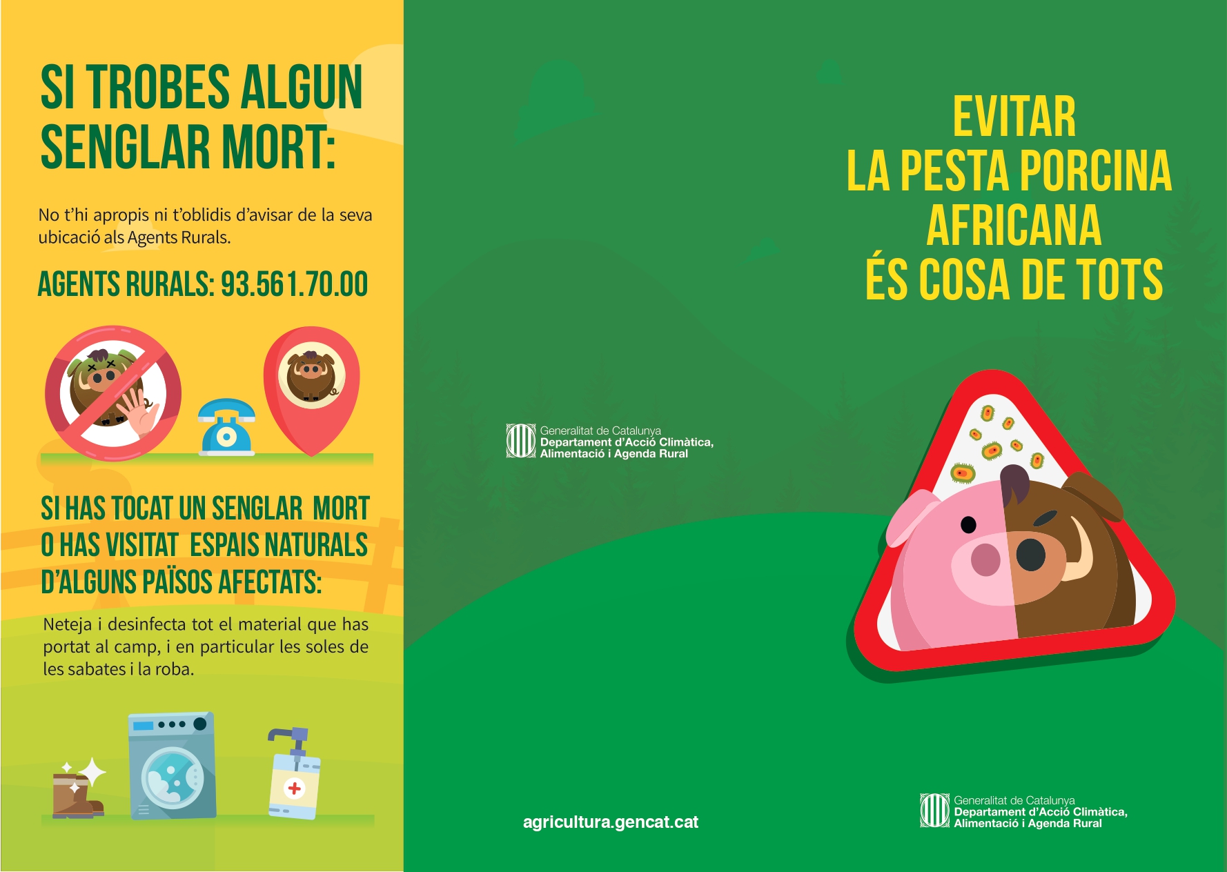 La Generalitat de Catalunya ens ha fet arribar informació i recomanacions sobre la detecció recent de la pesta porcina africana i les mesures establertes per evitar-ne la propagació. A continuació podeu consultar el cartell informatiu: