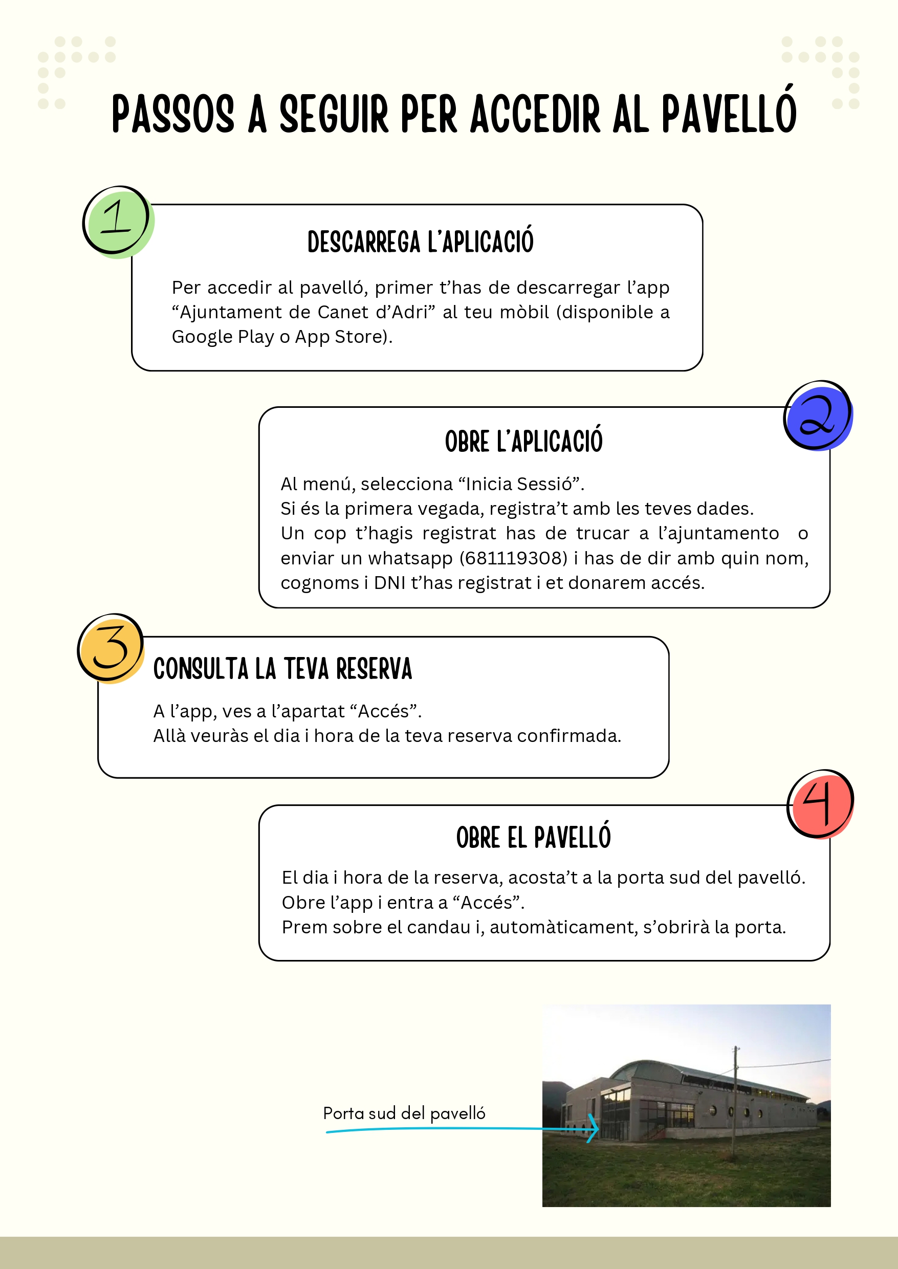 - Passos a seguir per entrar al pavelló