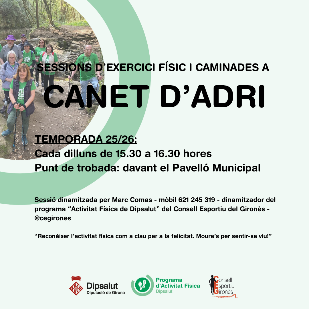 Sessions d’exercici físic i caminades a Canet d’Adri